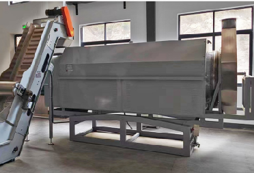 作業(yè)原理:茶葉經(jīng)過提升機進入連續(xù)滾筒式提香機,通過滾筒中的遠紅外陶瓷加熱板及導葉筋進行受熱連續(xù)提香。